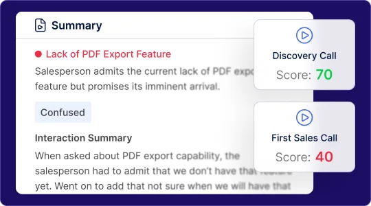 AI pinpoints individual challenge areas – tone, objection handling, qualification, etc.